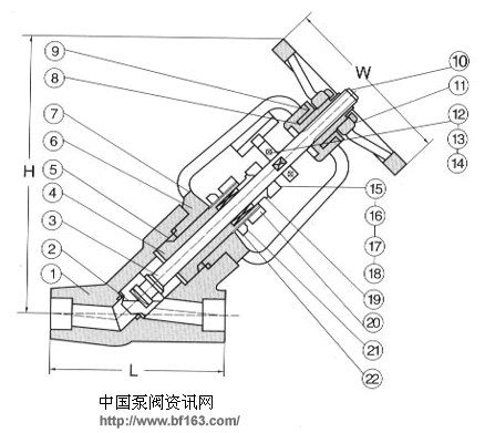 鍛鋼截止閥體蓋連接設(shè)計(jì)形式有三種 鍛鋼截止閥適用范圍 150-800Lb Y型鍛鋼截止閥主要尺寸及重量